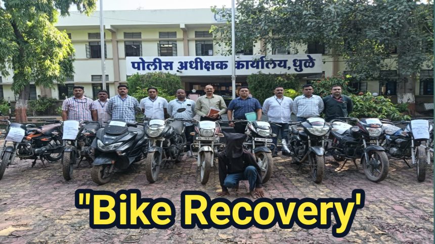 Dhule : The Local Crime Branch (LCB) of Dhule district has successfully cracked down on a motorcycle theft racket. In this major action, the police recovered a total of 10 stolen motorcycles and arrested one of the accused. Another suspect managed to escape during the operation, while a minor involved in the crime has been sent to a juvenile correction home.