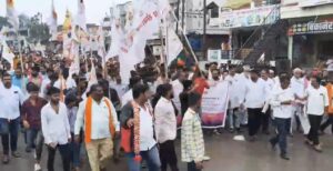 Thousands of Banjaras held a massive protest march at the Ardhapur Tehsil office today. Men and women participated in large numbers, raising slogans and carrying banners demanding immediate implementation of the Hyderabad Gazette for their community.