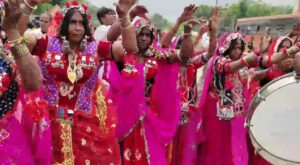 “Banjara women in traditional attire raise their voices during the agitation in Nanded.”