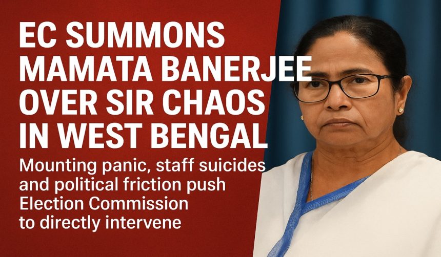 New Delhi : The Election Commission (EC) has officially summoned West Bengal Chief Minister Mamata Banerjee for an urgent meeting as the controversy around the Special Intensive Revision (SIR) continues to escalate. The move marks the strongest intervention by the EC so far, indicating that the confusion, allegations and public unrest have reached a point requiring leadership-level dialogue. The meeting is expected to address the state’s repeated complaints regarding mismanagement, high-pressure execution and rising fear among citizens.