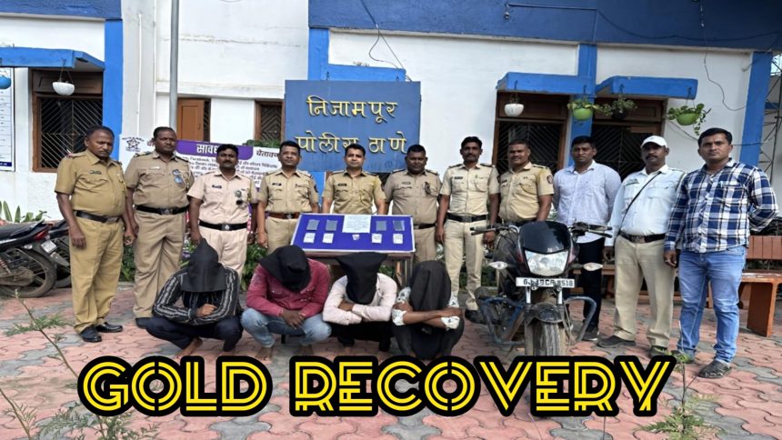 Dhule : In a major breakthrough, Nizampur Police have successfully solved the Balsane house burglary case, recovering stolen property worth ₹4.29 lakh. The seized valuables include 6 tolas of gold and cash, and three suspects have been arrested in connection with the crime.