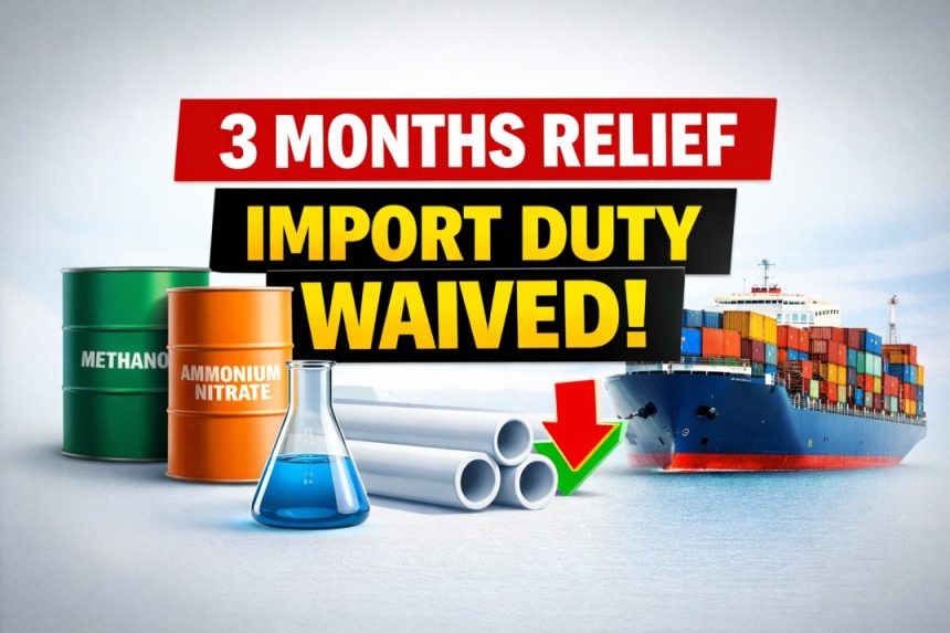 This decision comes at a time when several industries are facing rising raw material costs and supply disruptions. By removing import duties, the government aims to ensure smoother availability of essential chemicals that are widely used across sectors such as agriculture, construction, pharmaceuticals, and manufacturing.