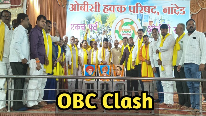 Nanded : The controversy over the Maratha quota has taken a sharp turn with the OBC (Other Backward Classes) community across Maharashtra rising in protest against the government’s latest resolution. The new order, which allows Marathas from the Marathwada region to secure Kunbi caste certificates on the basis of old Hyderabad records, has triggered widespread anger among OBC leaders and activists who see it as an attempt to dilute their existing reservation rights.