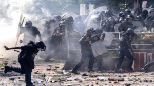 Nepal Police clash with protesters in Kathmandu amid Gen Z-led demonstrations against corruption and political instability.
