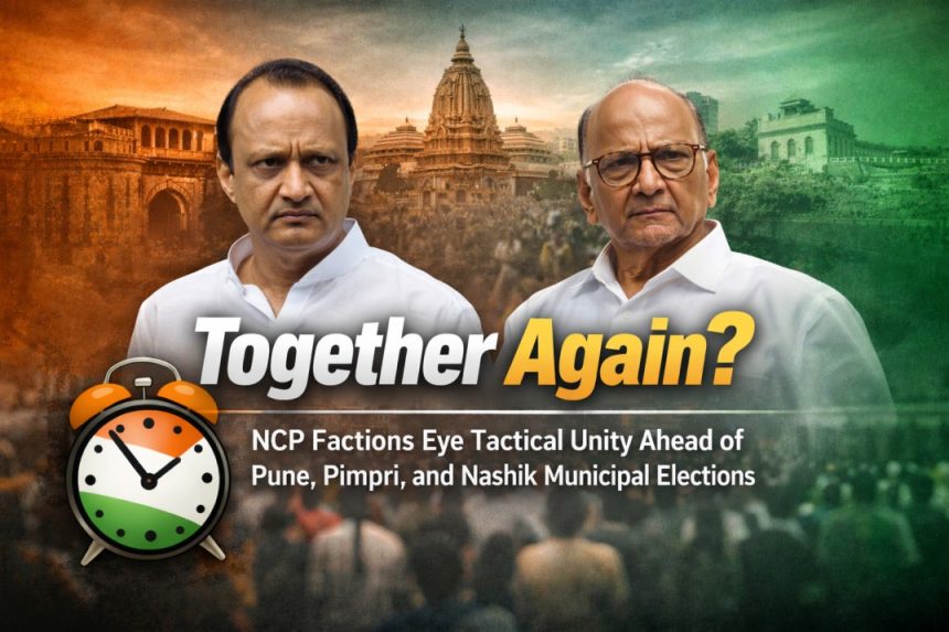Mumbai: Speculation around the two Nationalist Congress Party factions coming together has intensified as Maharashtra heads toward crucial municipal elections. While there is no formal announcement, political circles are abuzz with discussions suggesting that both the Sharad Pawar–led NCP (SP) and the Ajit Pawar–led NCP are exploring limited, tactical coordination in select civic bodies to prevent vote division and retain relevance in urban politics.